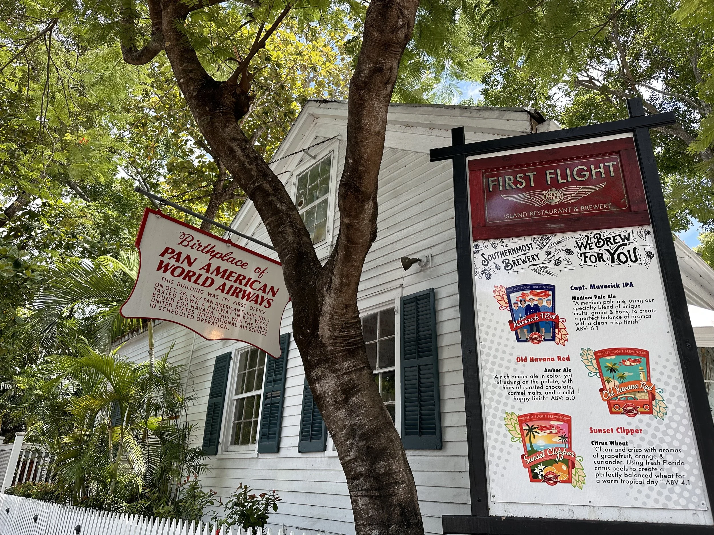 Located at 301 Whitehead St., on the corner of Whitehead and Caroline, stands one of Key West's most impressive and historic buildings – First Flight. Well known for being the birthplace of Pan American World Airways, Pan-Am's first tickets were sold out of this very building in 1927. Today, it’s a brewery with a touch of nostalgia.
