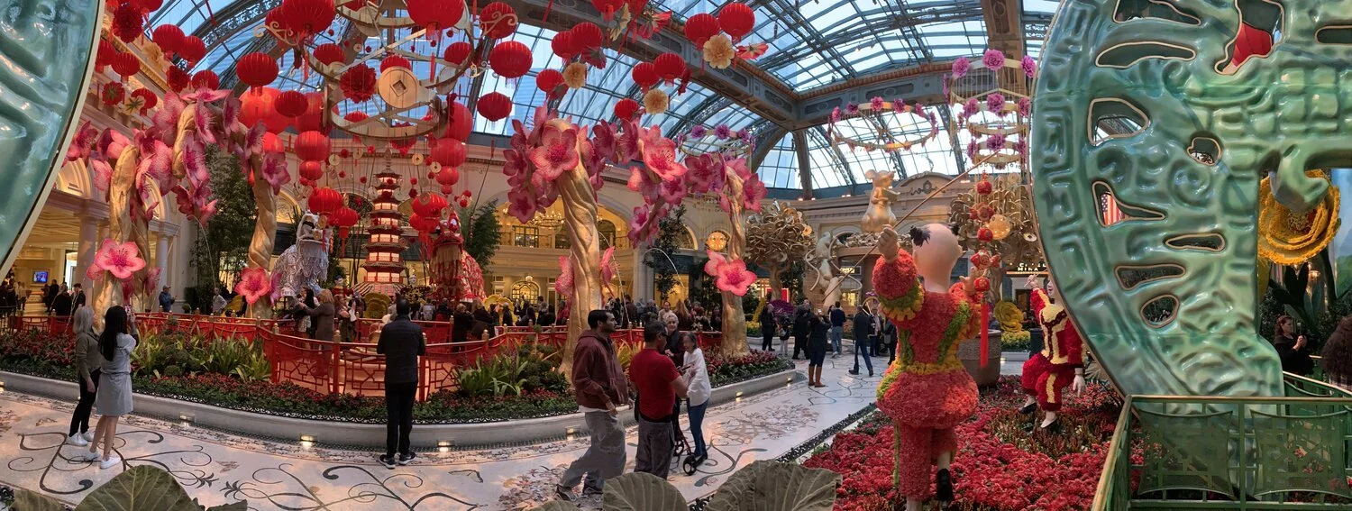 Bellagio - Bellagio’s conservatory is known for its epic seasonal floral displays! (Fun fact: They use anywhere from 10,000 - 20,000 fresh flowers for each). To get there, go straight past the front lobby on your left - you can’t miss it! Below is their 2023 spring display: